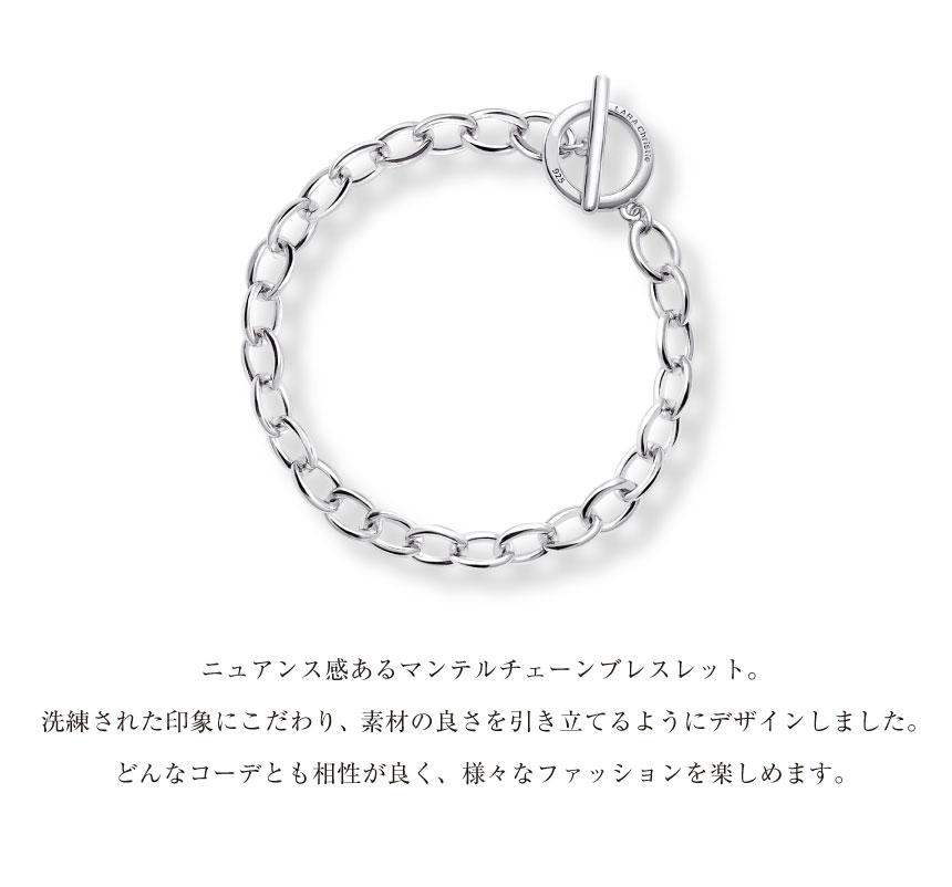 ニュアンス感あるマンテルチェーンブレスレット。 洗練された印象にこだわり、素材の良さを引き立てるようにデザインしました。