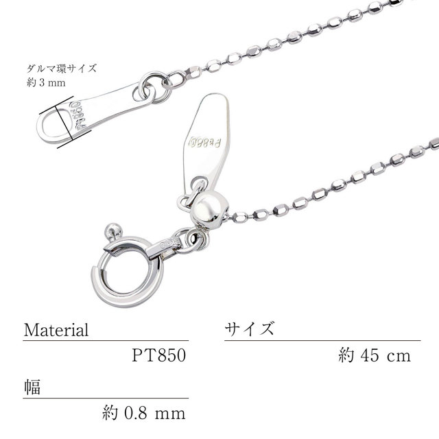 素材 プラチナ(pt850) / 仕様 カットボールチェーン / 留め具 引き輪