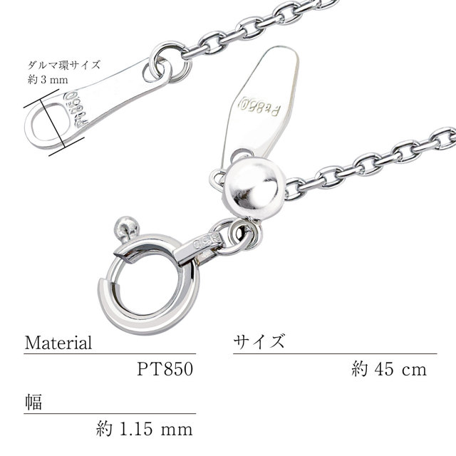 素材 プラチナ(Pt850) / 仕様 丸アズキチェーン / 留め具 引き輪