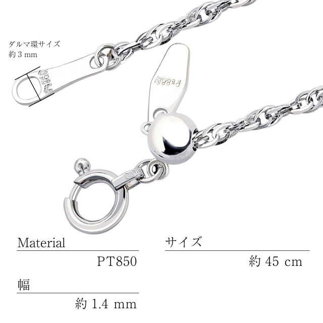 素材 プラチナ(Pt850) / 仕様 縄角線 チェーン / 留め具 引き輪