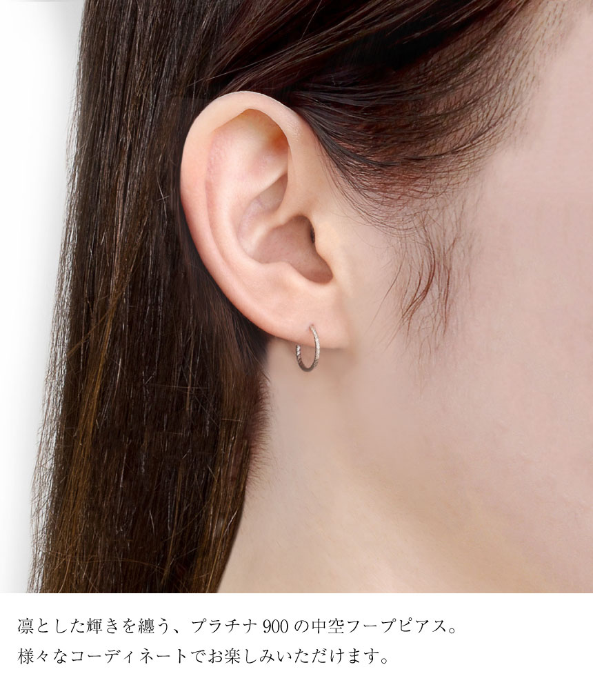 凛とした輝きを纏う、プラチナ900の中空フープピアス