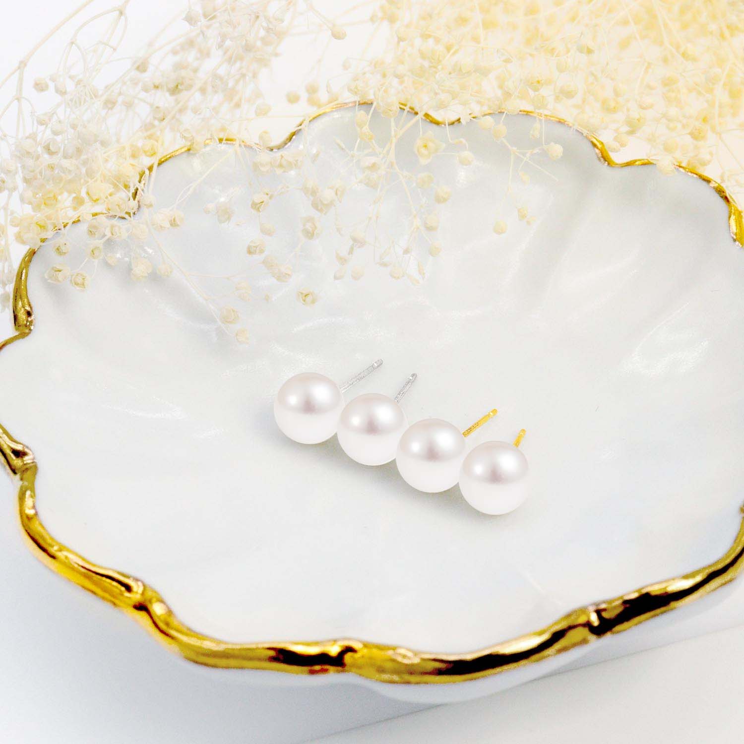 7~8mmのパールが印象的な、シンプルデザインのスタッド ピアス。洗練されたデザインがどんなコーディネートもワンランク上に格上げします。