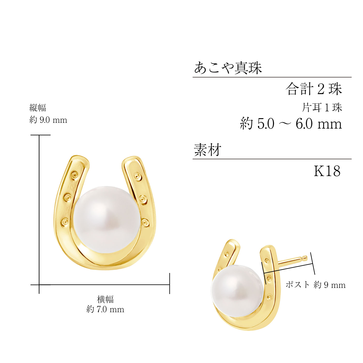 サイズ:縦幅約9mm 横幅約7mm/ポスト約9mm