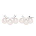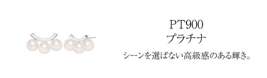 その中でも、穏やかなカーブを描くスマイルバーに3粒のあこや真珠をあしらったPT900ピアスは、清楚さとモダンな表情を兼ね備えた逸品です。