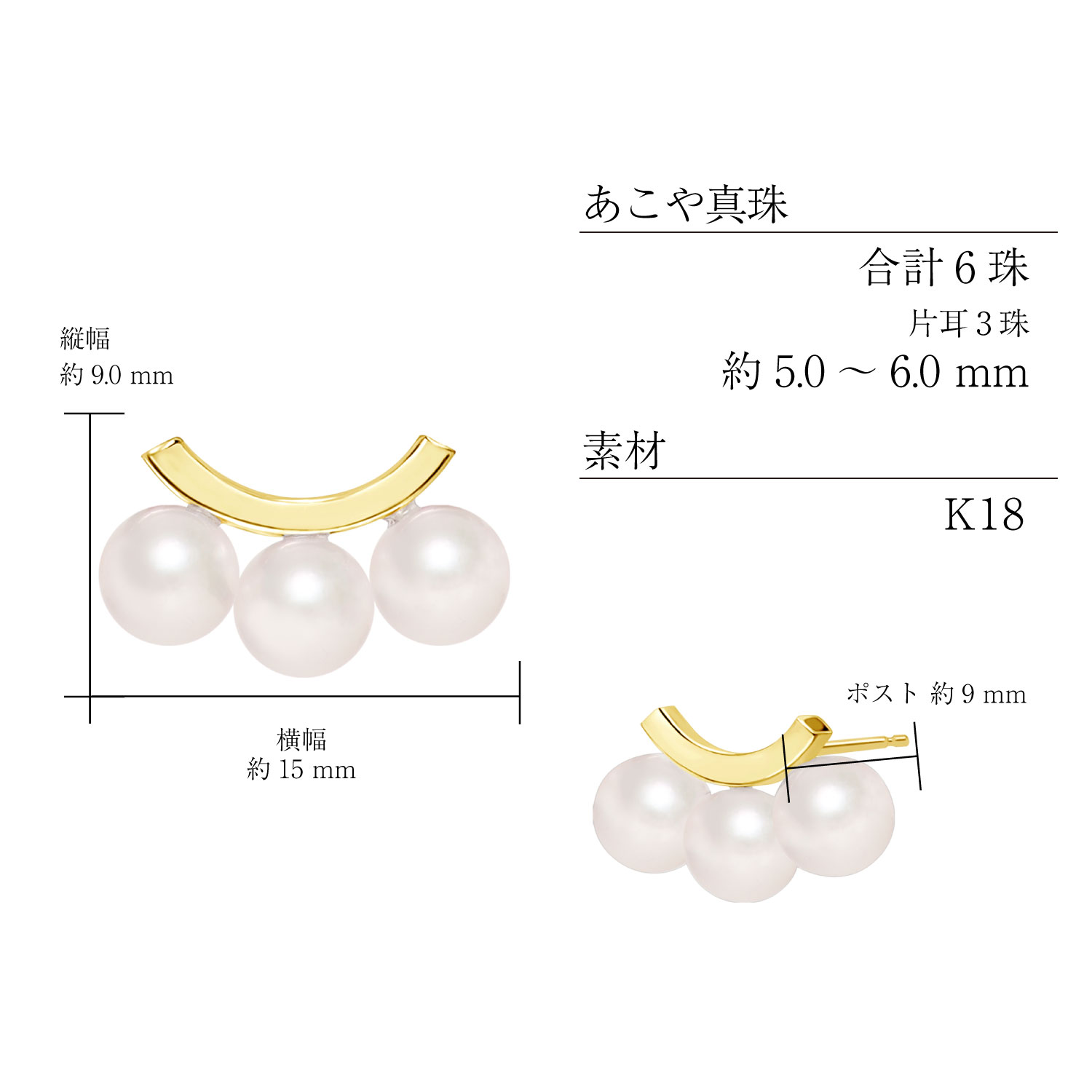その中でも、穏やかなカーブを描くスマイルバーに3粒のあこや真珠をあしらったK18ピアスは、清楚さとモダンな表情を兼ね備えた逸品です。