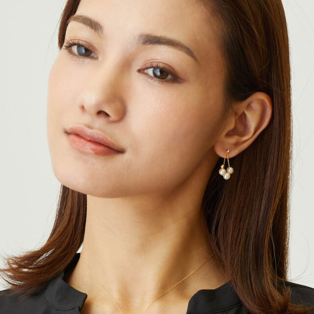 シンプルなパールときらきら輝くアズキチェーンが、ワンランク上の装いに格上げします。