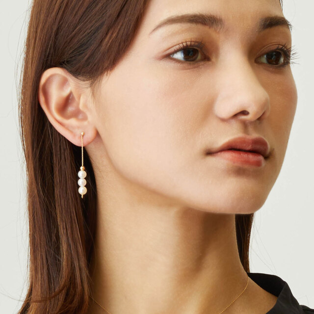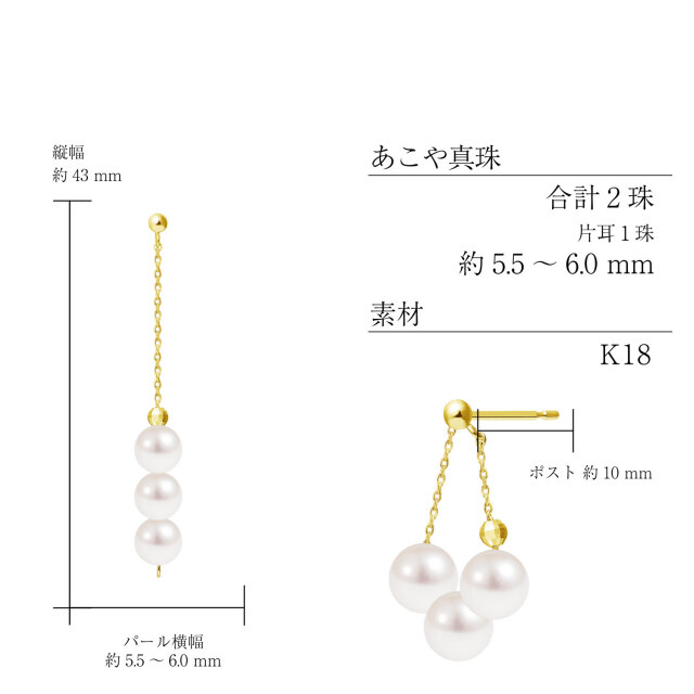 サイズ:全長約42mm アコヤ真珠約4mm3珠/ポスト10mm