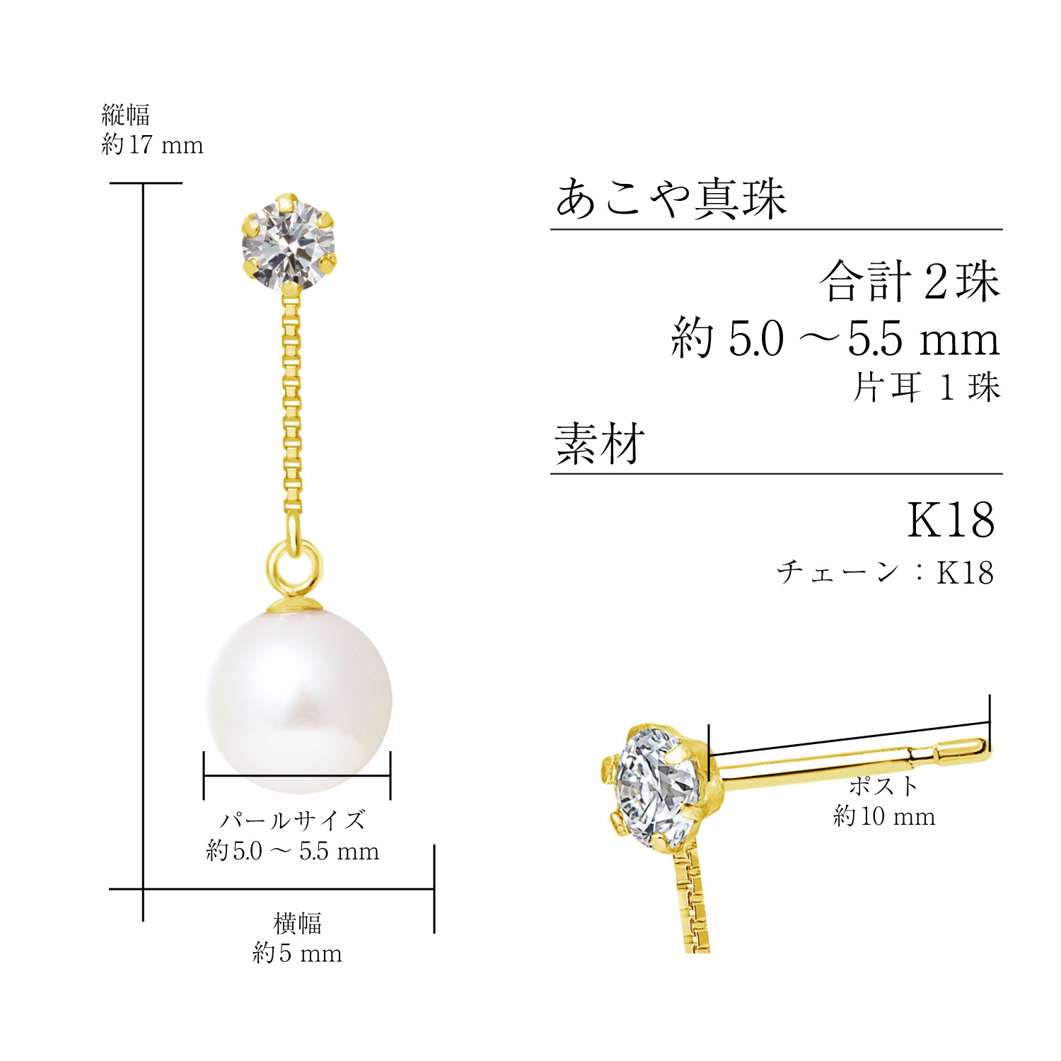 あこや真珠:合計2珠 5.0-5.5mm(片耳1珠)
