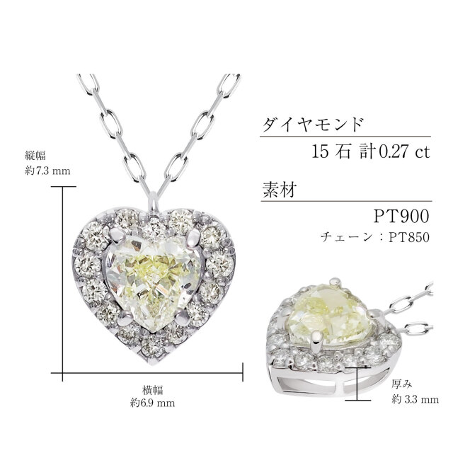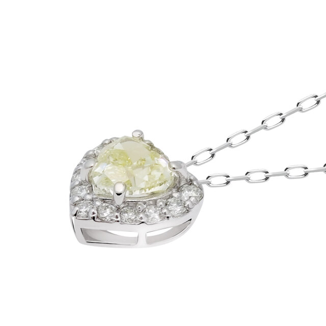 メインストーンはかわいらしいハートシェイプダイヤモンド。さらにその周りを贅沢にダイヤモンドで取り囲むことで合計15石、計0.27 ctを使用した、ダイヤモンドネックレス。デコルテを上品に輝かせます。フォーマルからカジュアルまで、アクセントとしてお楽しみいただけます。