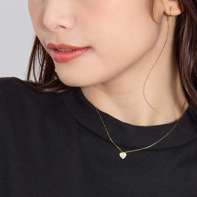 大人可愛い、ハートシェイプダイヤモンドネックレス。
