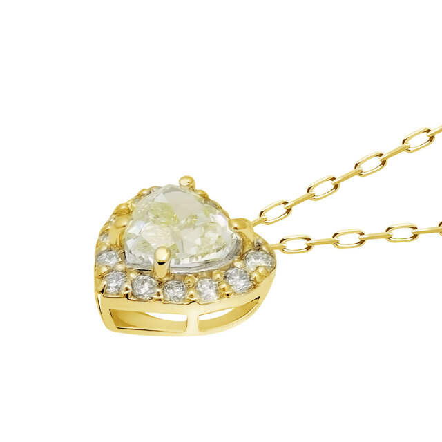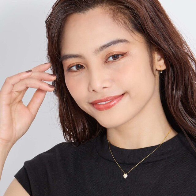 メインストーンはかわいらしいハートシェイプダイヤモンド。さらにその周りを贅沢にダイヤモンドで取り囲むことで合計15石、計0.27 ctを使用した、ダイヤモンドネックレス。デコルテを上品に輝かせます。フォーマルからカジュアルまで、アクセントとしてお楽しみいただけます。