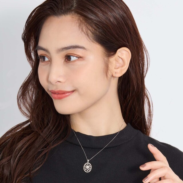 胸元で存在感を放つオーバルデザインネックレス。ダイヤモンドを合計52石、計1.0 ctも贅沢にあしらいました。フォーマルからカジュアルまで、アクセントとしてお楽しみいただけます。