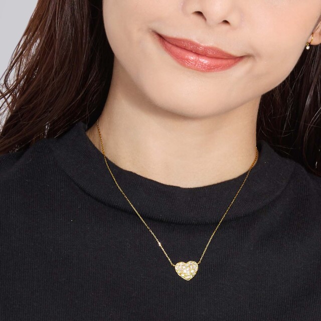 大人可愛い、ハートパヴェダイヤモンドネックレス。ダイヤモンドを贅沢に合計24石、計1.0 ct使用した、ハートネックレス。