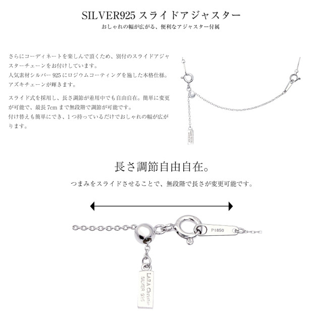 スライド式アジャスターチェーン:シルバー925(SV925)/最大7cm