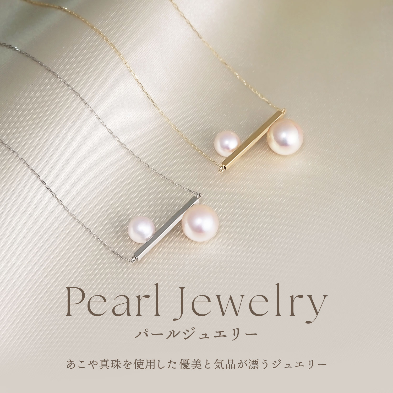 大粒パールは胸元に華やぎを添えるポイントに、小粒パールは控えめながらも光を集める繊細なアクセントとして機能。