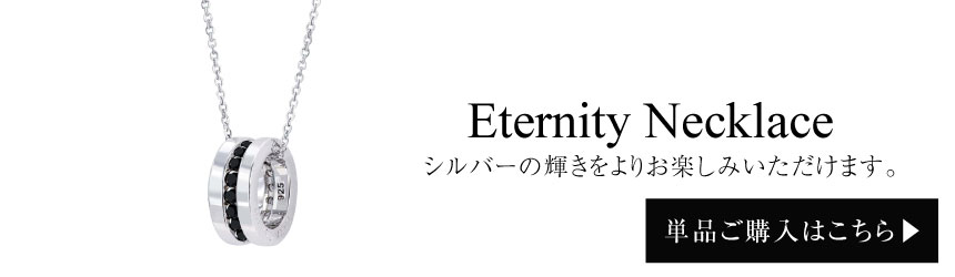 ペンダントトップにキュービックを散りばめた「エタニティ ネックレス」シリーズに、芳醇な輝きを放つブラックスピネルを用いたネックレスをあしらった男性用のネックレス。ペンダントトップとチェーンの双方が輝きを放つことで、デコルテにより強いインパクトを与えることができるところが人気です。