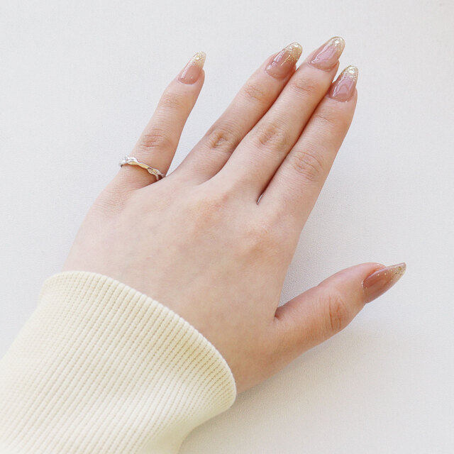 二種類のデザインが重なり合う、ウェーブデザインのリングは、