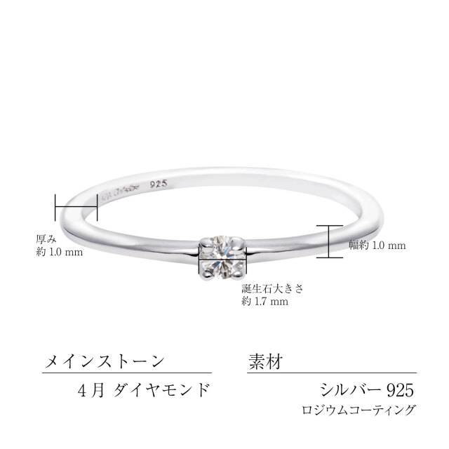 サイズ:幅約1.0×厚み1.0mm 誕生石:約1.7mm