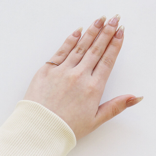 指先で輝く誕生石がコーディネートのワンポイントに。
