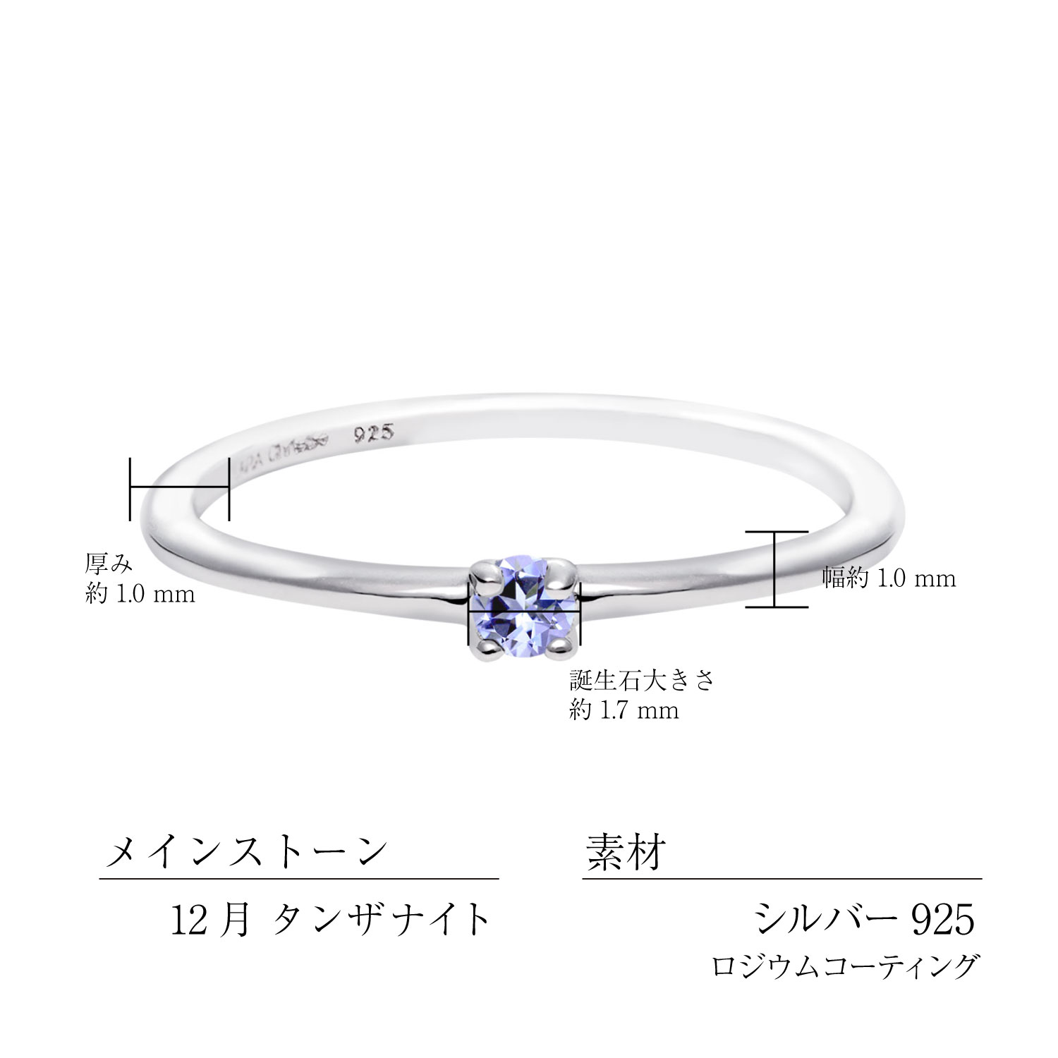 サイズ:幅約1.0×厚み1.0mm 誕生石:約1.7mm