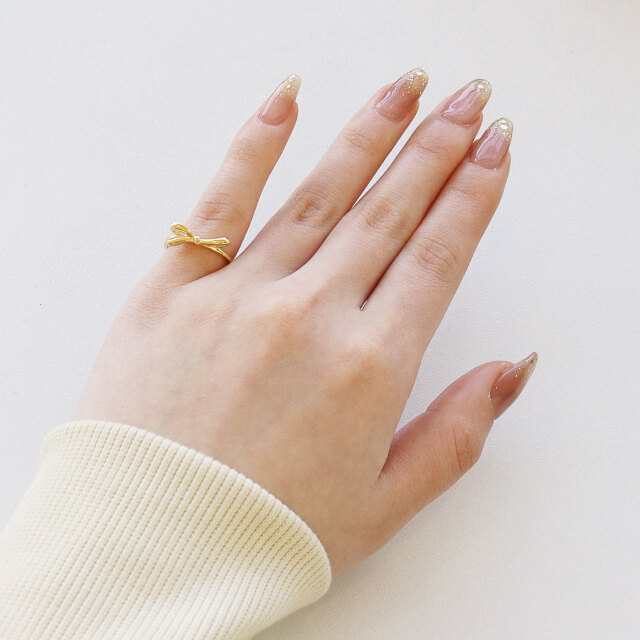 リボンを指に結んだようなデザインのリングは、