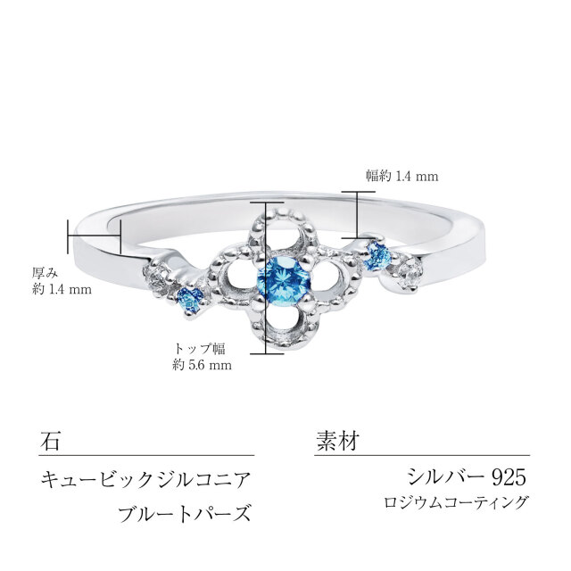 フラワーモチーフの地金に天然石をセッティングしたリングは、