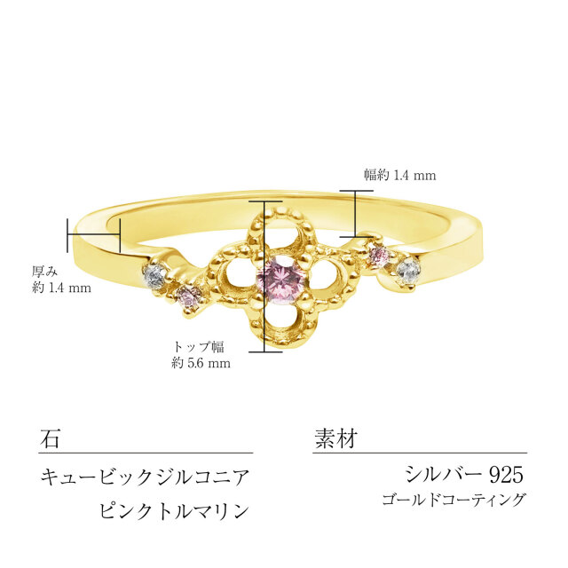 フラワーモチーフの地金に天然石をセッティングしたリングは、