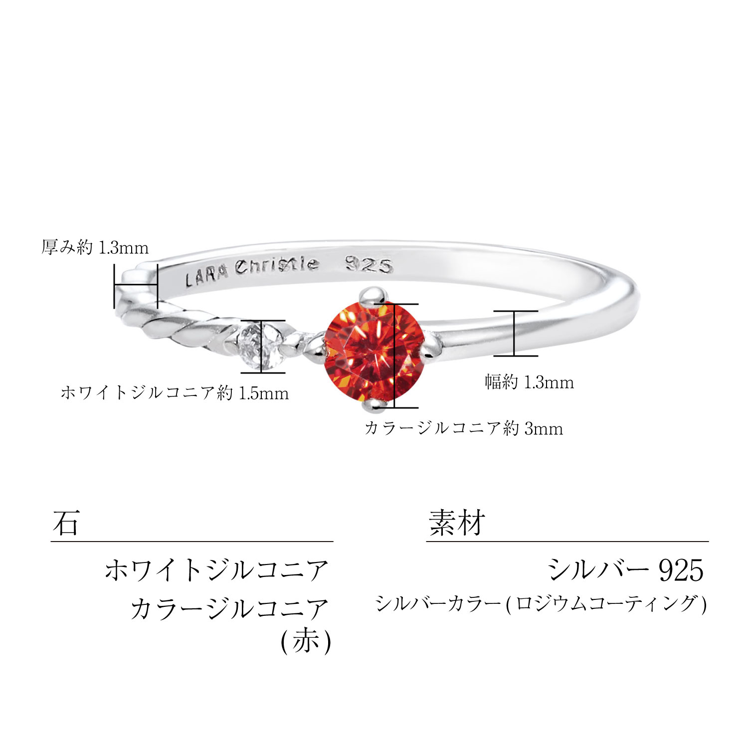 サイズ:幅約1.3mm×厚み約1.3mm×トップ幅カラージルコニア約3mm/ホワイトジルコニア約1.5mm