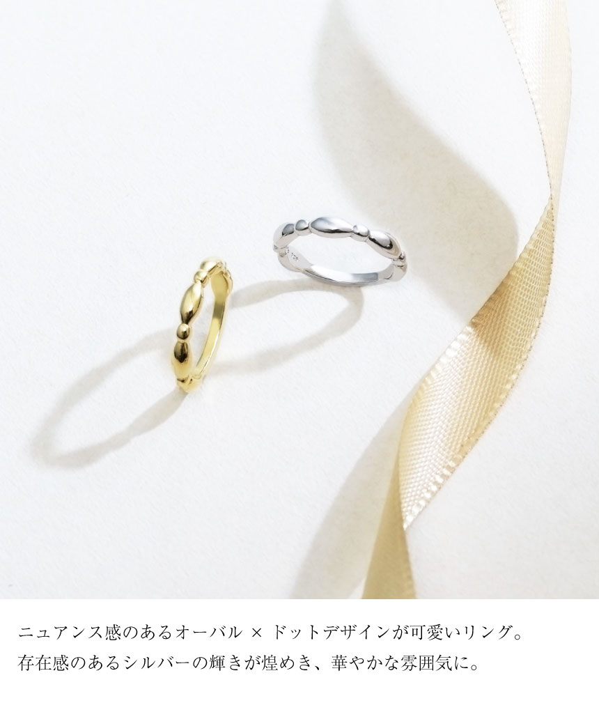指もとのアクセントにピッタリなオーバル×ドットデザインのリングは、
