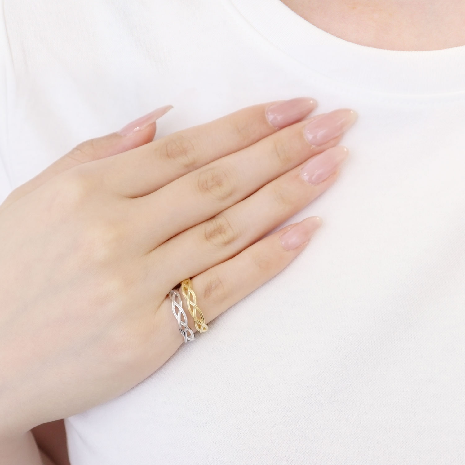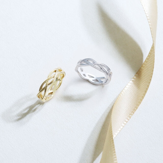 編み込みデザインのリングは、