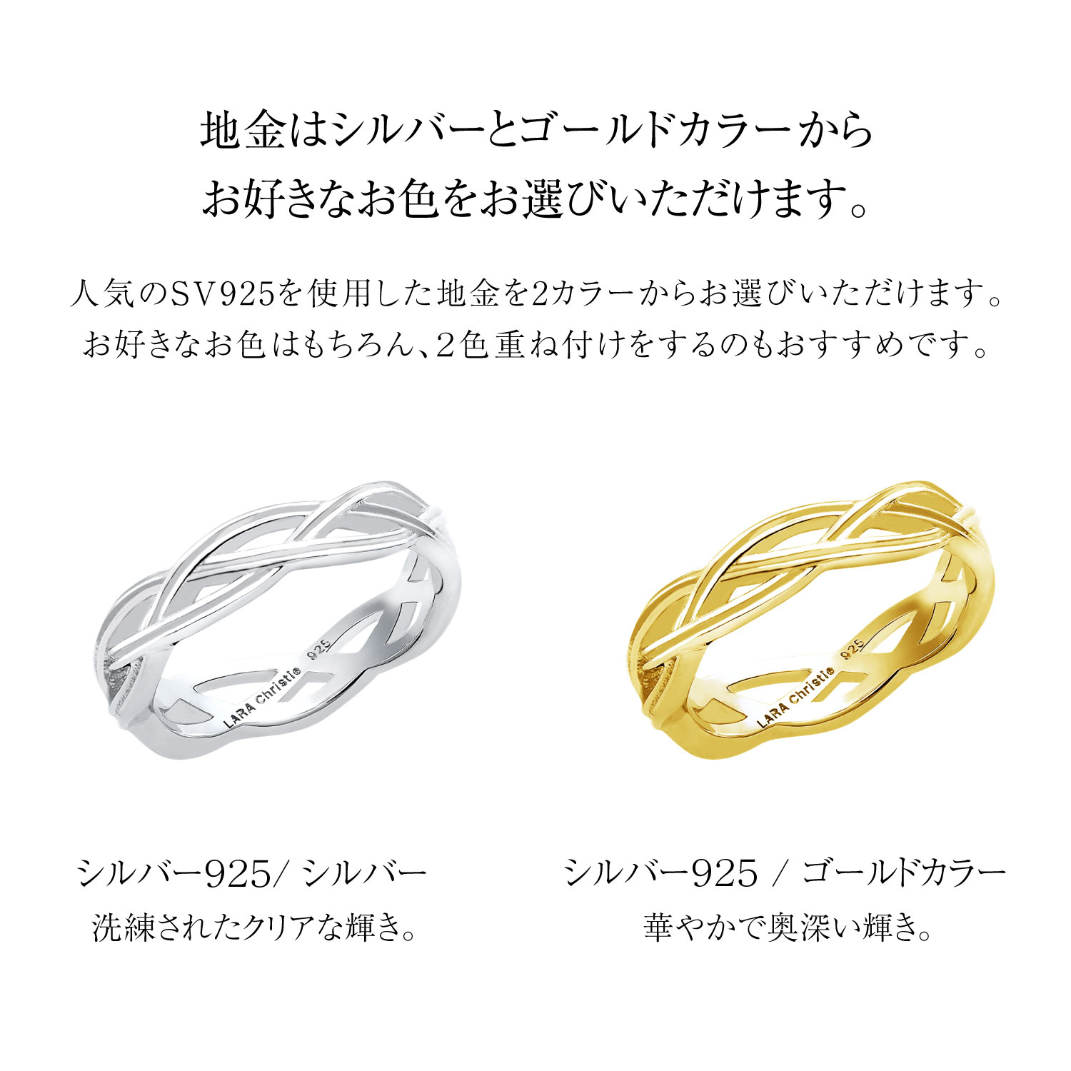 シルバー925を使用したLARA Christieピンキーリングコレクション。