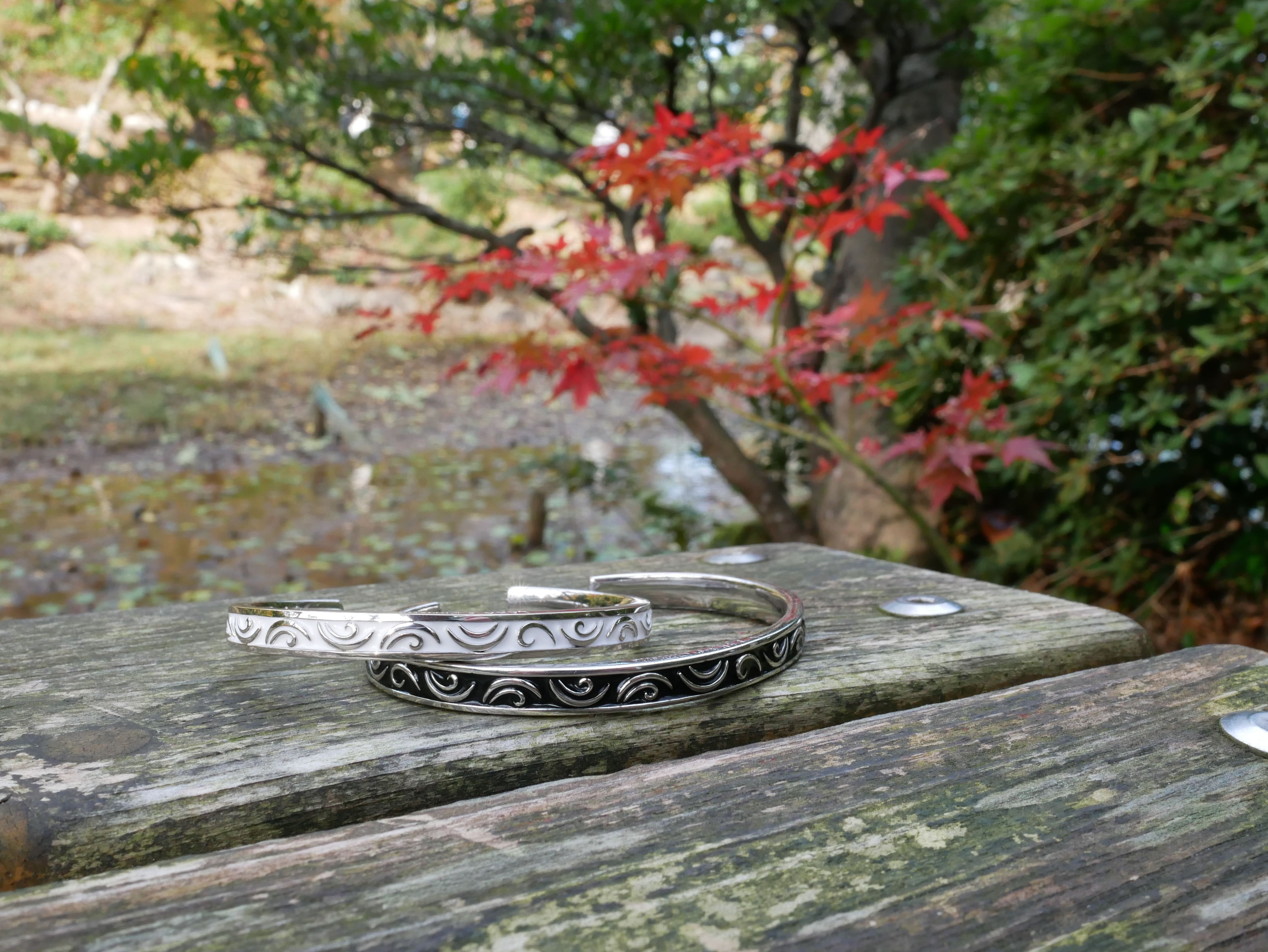 四方八方に途切れることなく続くデザインは、幸福が永遠に続くことを表しており、とても縁起がいいです。後ろ側は純銀の輝きが楽しめるようになっており、角度によって様々な姿を楽しめるでしょう。