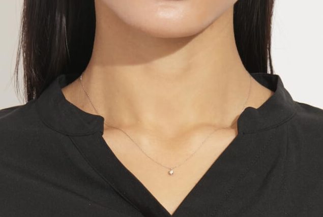 プラチナの上品な白さと、シャンパンカラーの知的なブラウンが絶妙に調和し、オフィスにも馴染む落ち着いた輝きを実現しています。デコルテにそっと添えるだけで、大人の女性の品格を高めてくれます。0.1ctというサイズは日常使いに最適で、ファーストジュエリーとしてもおすすめです。