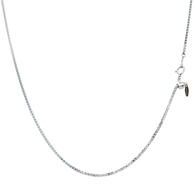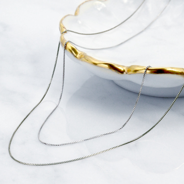 「ベネチアンチェーン(ボックスチェーン)」は、四角いパーツを密に組み合わせた構造をしています。アズキチェーンとは対照的に、隙間がほとんどないのが特徴です。