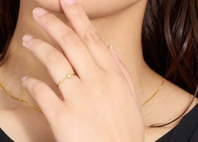 指元で輝くハートリングが、あなたの愛と幸福を育ててくれるでしょう。