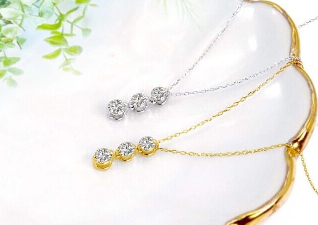 縦に並んだ三石のダイヤモンドは、それぞれ「過去・現在・未来」を象徴すると言われています。これまで歩んできた道のりを肯定し、今を輝かせ、未来への希望を繋ぐ――。そんなストーリー性のあるデザインは、大人の女性が持つお守りジュエリーとして最適です。0.1ctというサイズ感は、主張しすぎず、それでいて確かな存在感をデコルテに添えてくれます。
