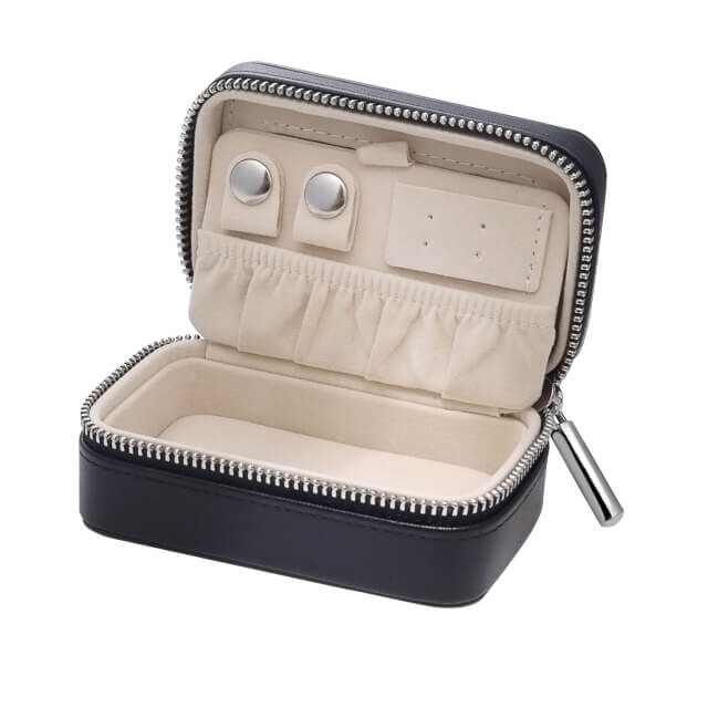 旅行で必要な数日分のジュエリーを、この一つのコンパクトなケースに安全に収めることが可能です。