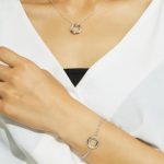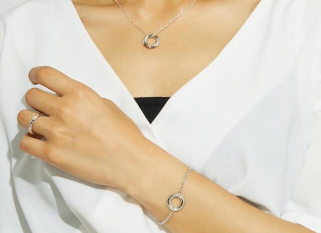 ネックレス、リング、ブレスレットの3点をシリーズで揃えることで、全身に統一感のある輝きを配することができます。