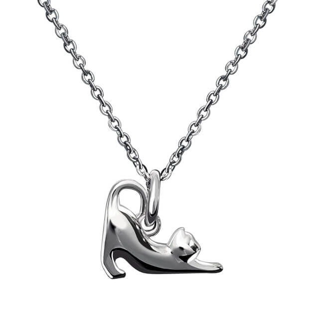 女性向けのホワイトレーベルは、シルバー925に純白の輝きを放つロジウムコーティングを施しています。猫のシルエットが描く曲線美は、女性のデコルテを美しく見せるために計算し尽くされています。
