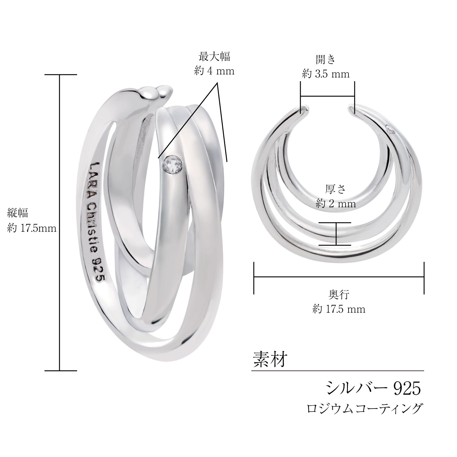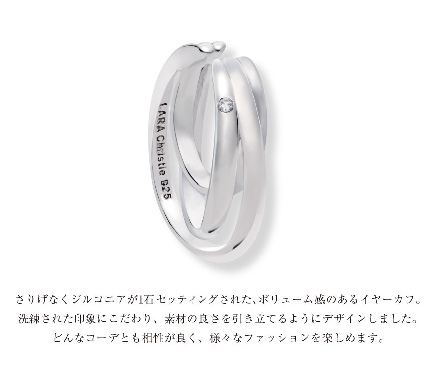 さりげなくジルコニアが1石セッティングされたボリューム感、アシンメトリーデザインが目を引くイヤーカフ。