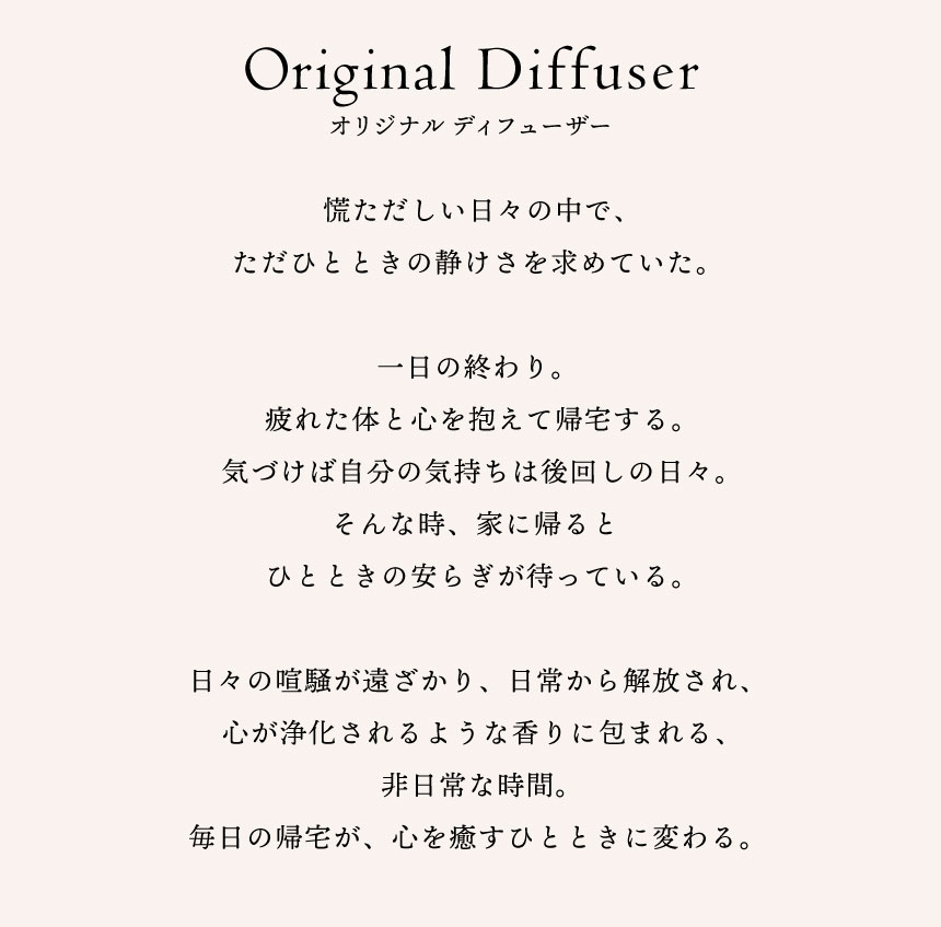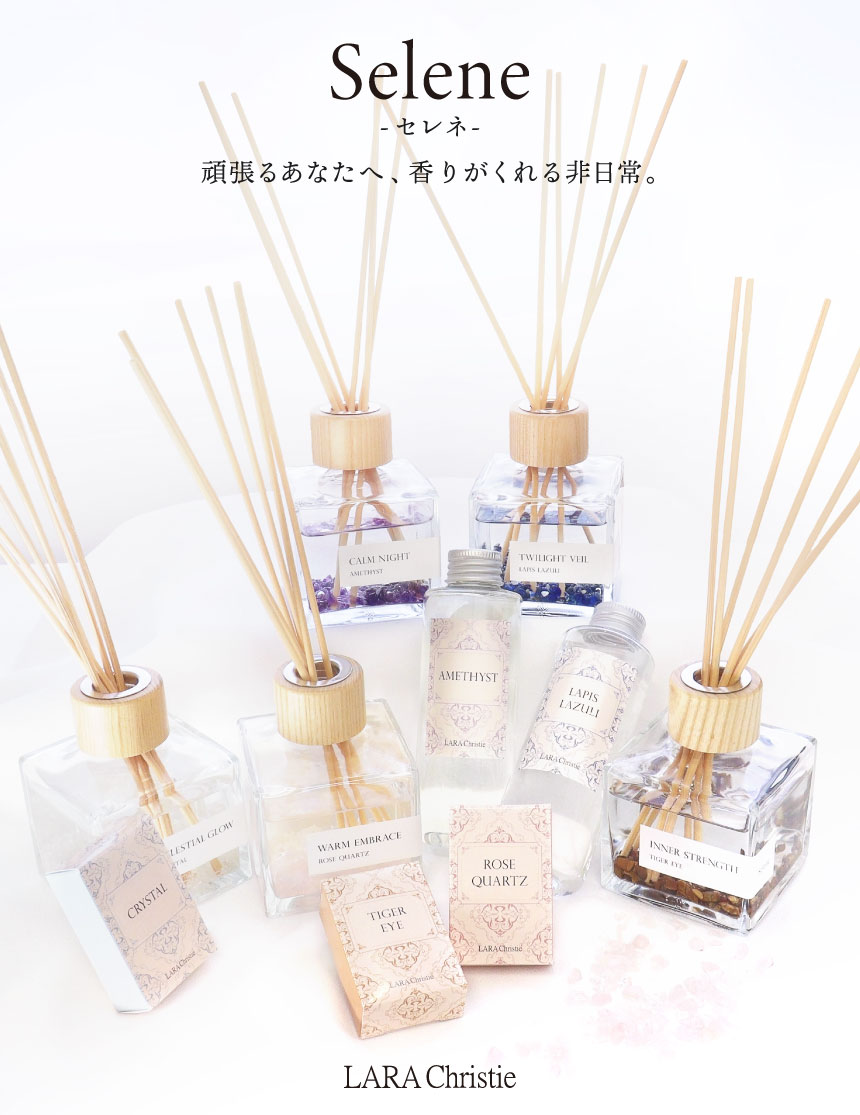 LARA Christieのディフューザー、Selene(セレネ)は、一日の終わりに自分を取り戻す時間をイメージして生まれました。