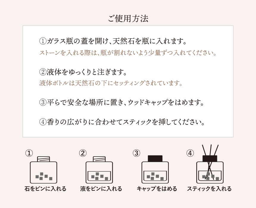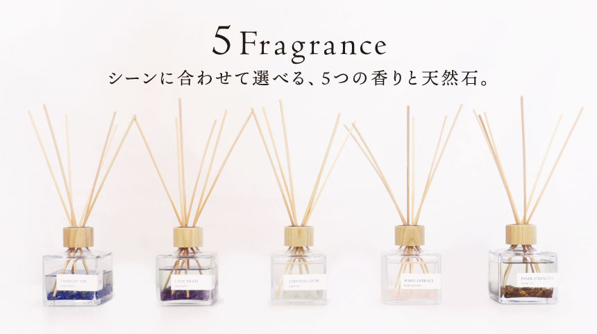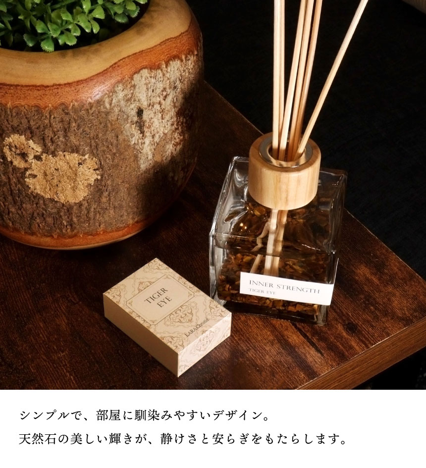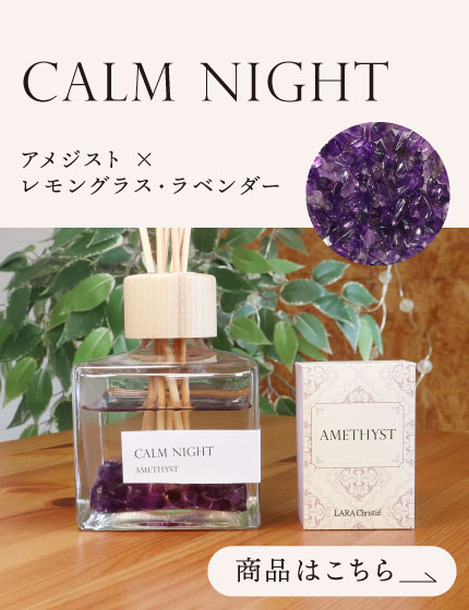 天然石が宿す意味と、やさしく広がる香りが重なり合い、夜のひとときを穏やかに包み込む。